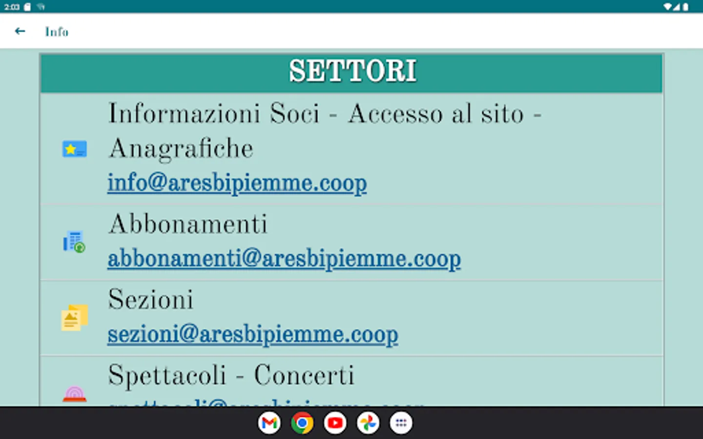Furthermore, with a simple tap, you can directly book events and leave your own opinion on the services offered and contact the Ares Bipiemme facility by phone or email.