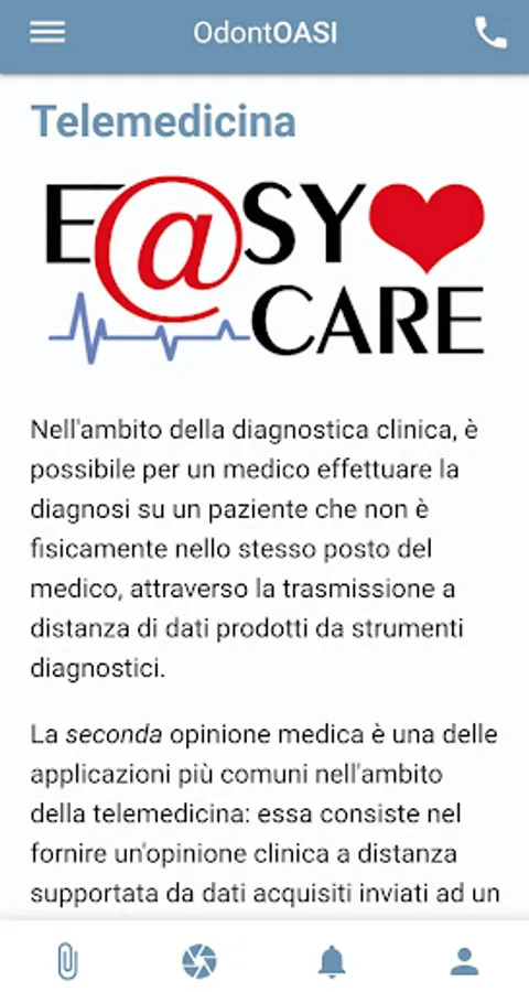 Telemedicine is the set of medical and IT techniques that allow the treatment of a patient remotely or more generally to provide remote health services. odontOASI is an APP that was designed to be always at the side of patients and follow them in their therapy and care path.