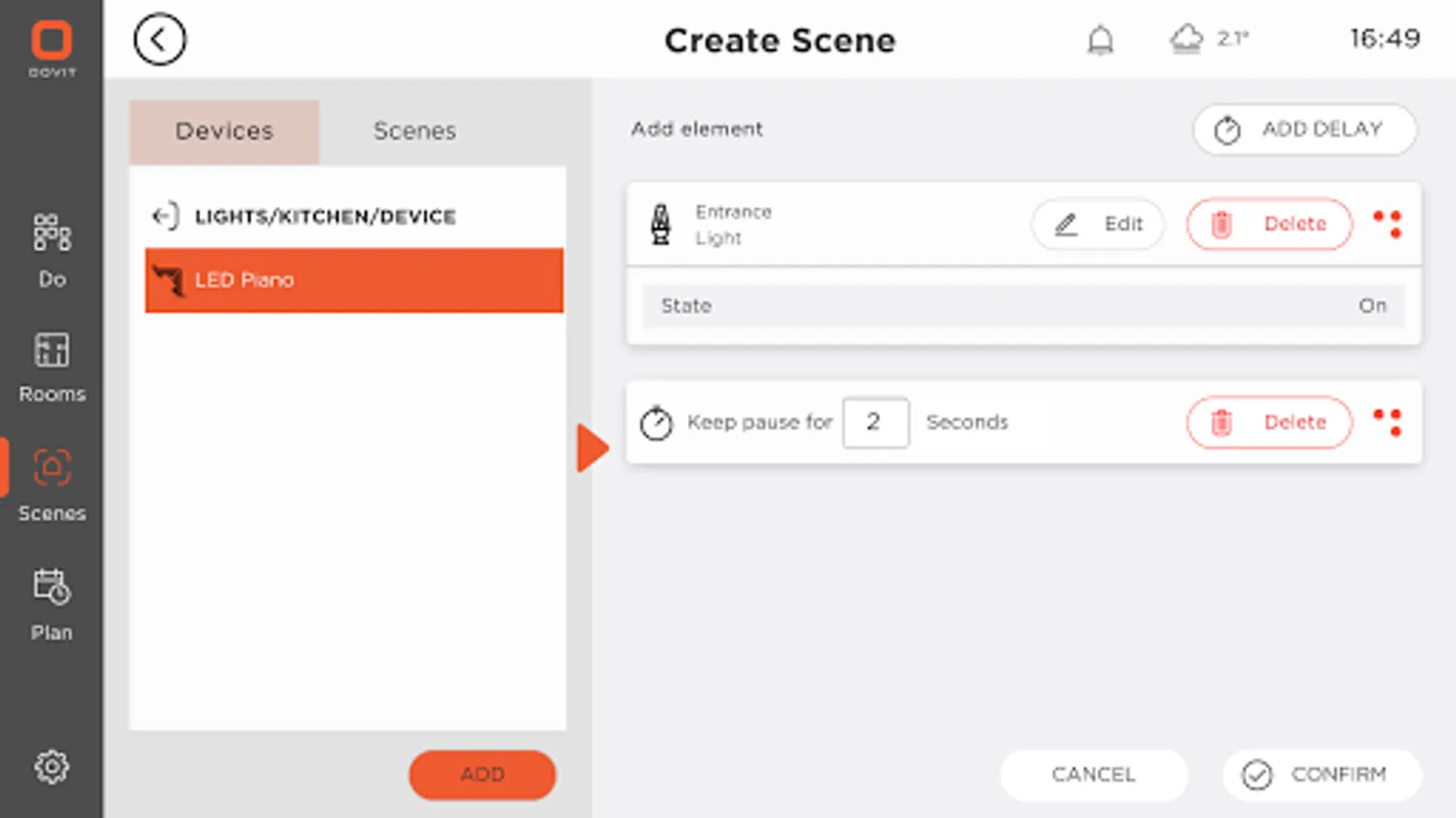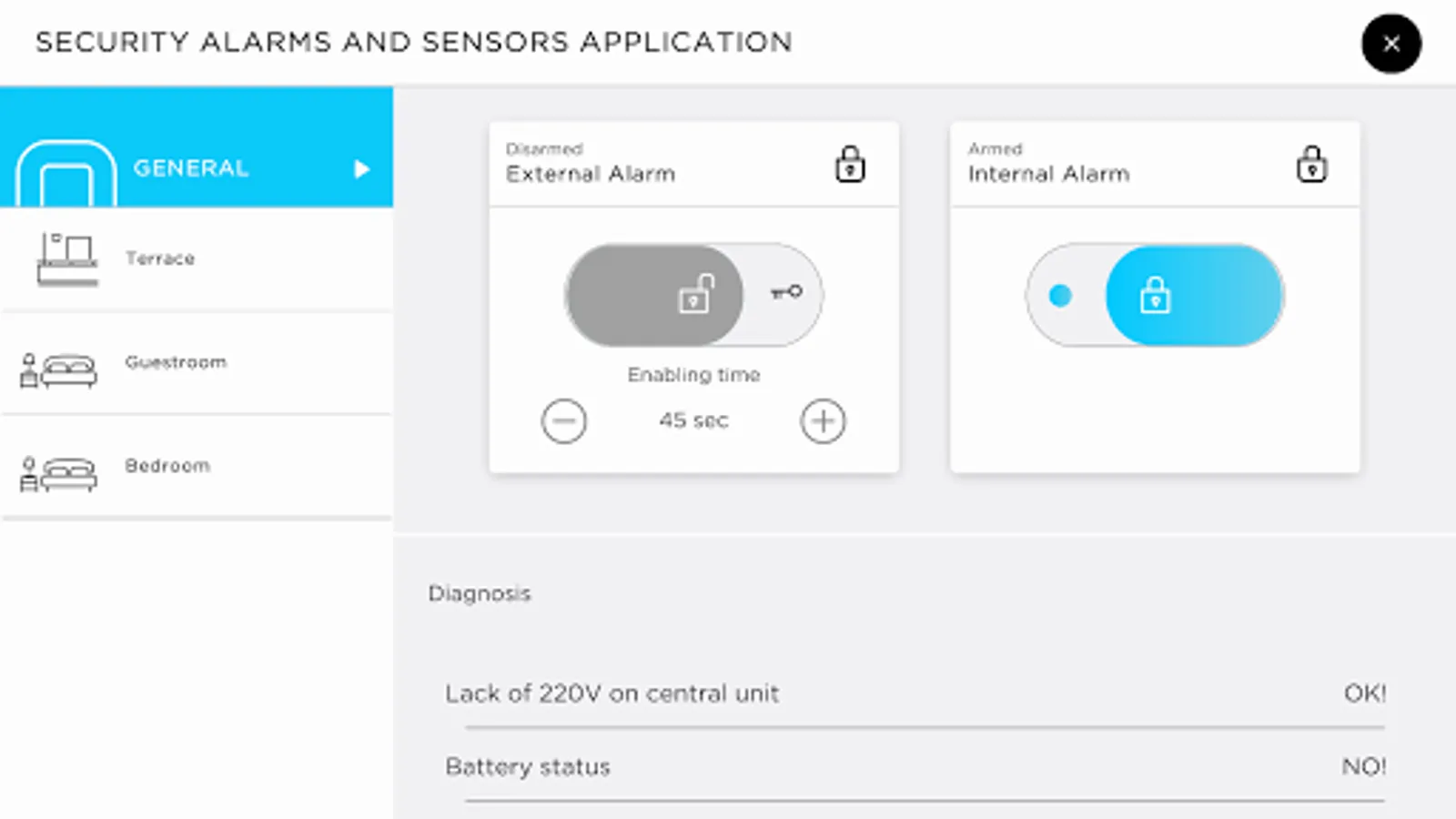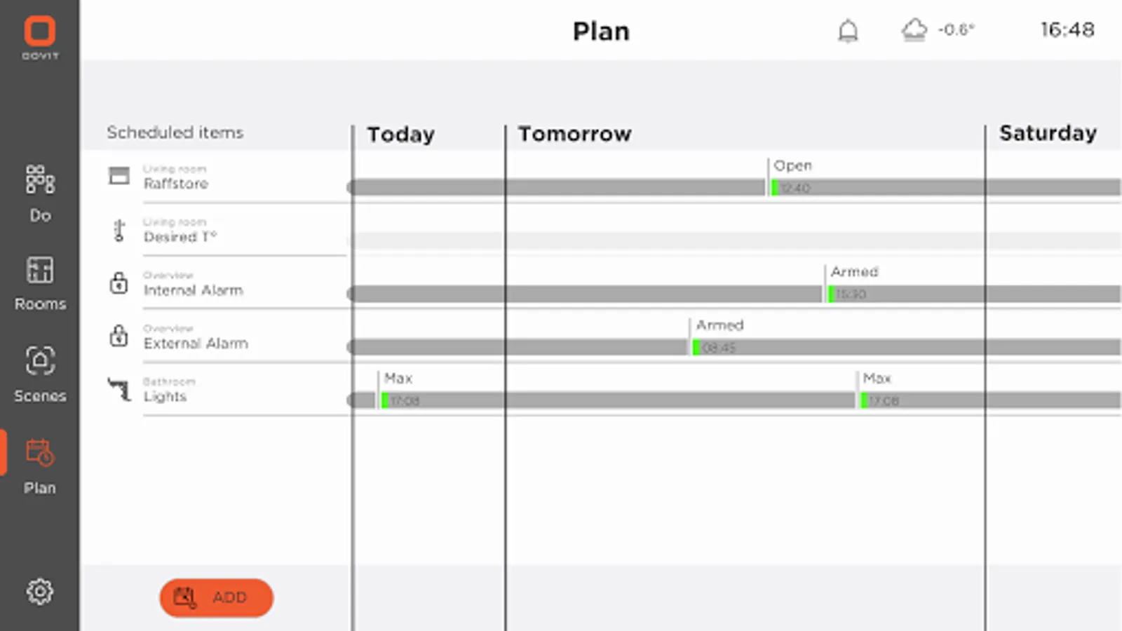Create your custom scenarios, give your preferred name to everything and set the icons you like, add plannings, whatch videocam and open the gates and let your friends come in.
