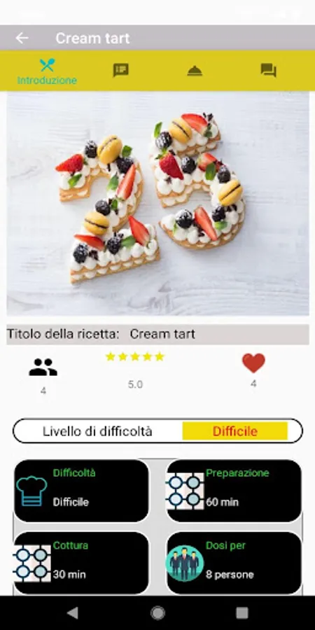 The recipes are divided into 4 categories: appetizers, first courses, second courses and dessert. For each recipe you can find the