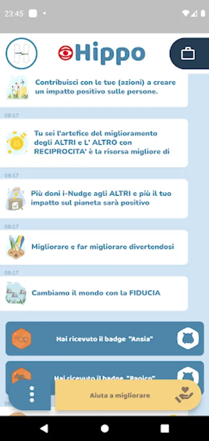 Abbiamo appena finito una riunione fra colleghi, un confronto fra amici, una telefonata di lavoro? Attraverso Hippo possiamo esprimere le sensazioni relative alla nostra interazione, inviando Nudge (suggerimenti gentili) e Coin (apprezzamenti).