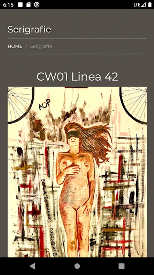 SCREEN PRINTING - each work is reproduced in 12 unique pieces: 12 specimens all different repainted with essences, perfumes and acrylics (serigraphs made by Alberto Serighelli): with the app you can navigate between the different specimens.