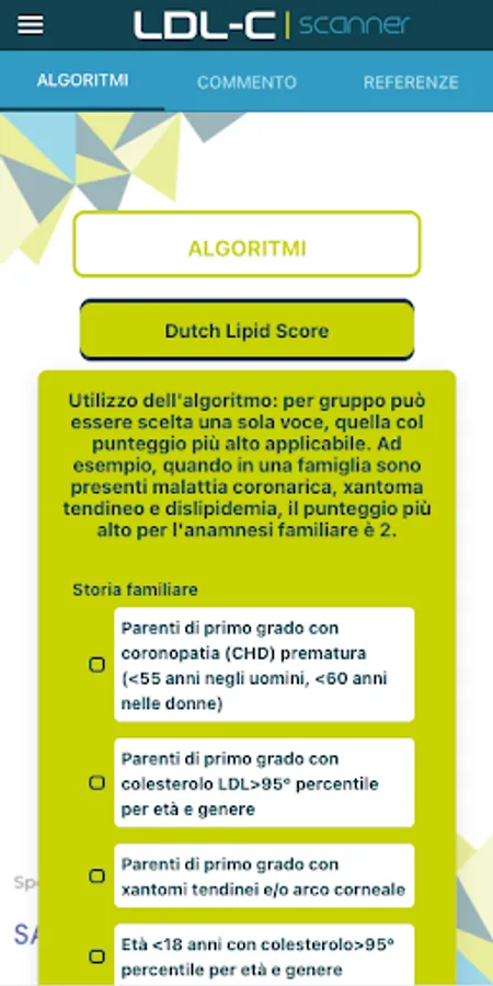 3. Dutch Lipid Score on familial hypercholesterolemia, which uses a series of simple questions that do not require critical activities on the part of the Doctor, to assess the clinical suspicion.