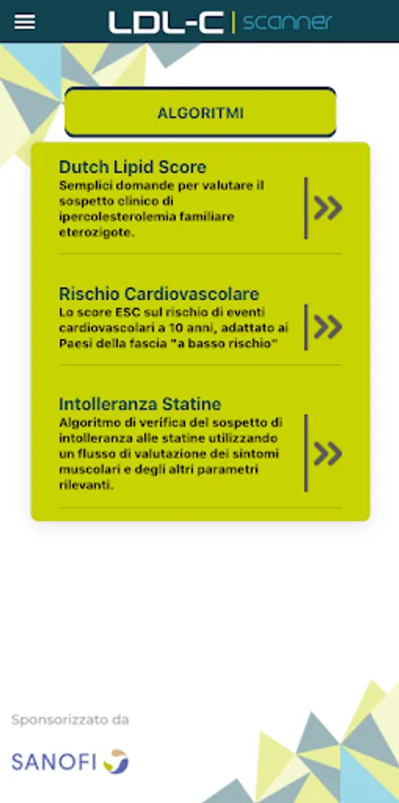 5. Simulator of the effectiveness of cholesterol-lowering therapy: again on the basis of the data from the "summary of product characteristics" authorized by regulatory bodies, the app allows you to calculate the possible outcomes of the lipid-lowering therapies available.