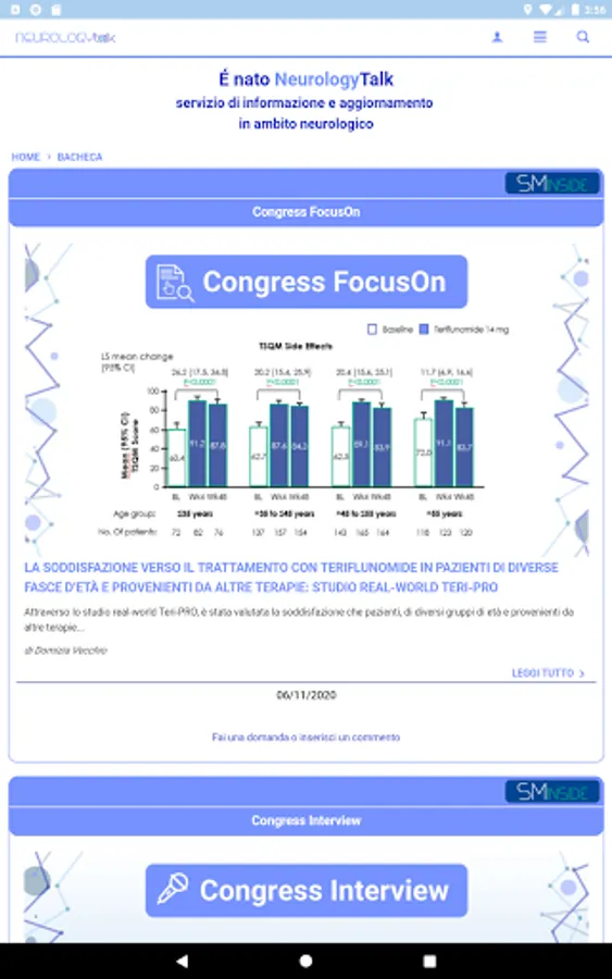 In addition to the most important world congresses live through the website and the app, thanks to NeuroTalk it is possible to attend live events from Italy, interviews with the most qualified colleagues, intervene live during our webseminars.