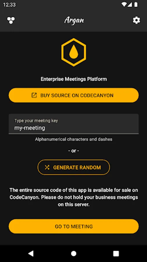 You can play around and host meetings on the Argan app itself, or you can buy the app source code and publish your own (rebranded) meetings app. You are also allowed to charge your users for usage, within the extended license.