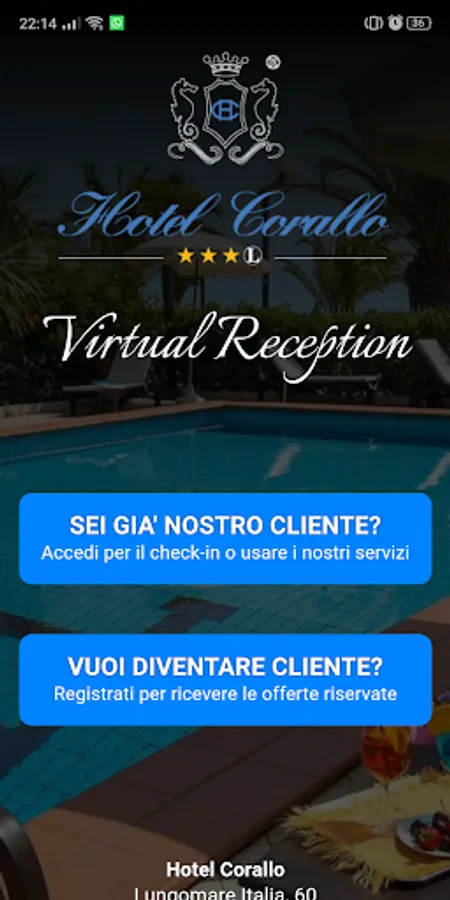 Through the App Hotel Corallo Virtual Reception it will be possible to check in at the hotel, request extra services (booking umbrellas on the beach, newspapers, daily menus and various extras), as well as view information resources that the hotel offers disposition (landscape, artistic, commercial, etc)