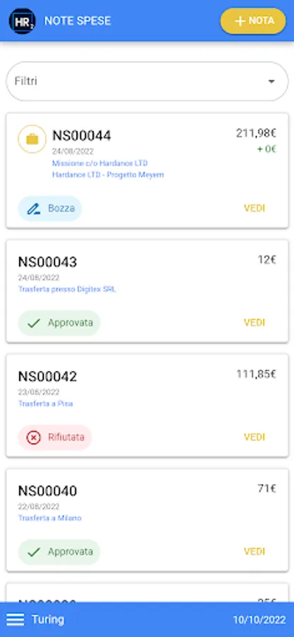 - Check, approve or request details on each expense item
