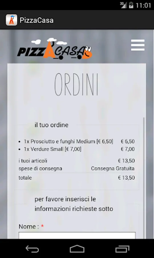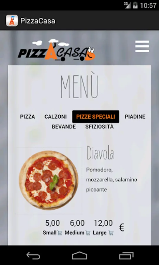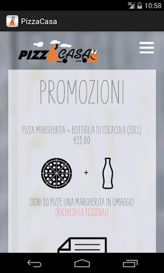 Through the app you can choose the Pizza House pizza you prefer, leave your address and send your order directly from the app!