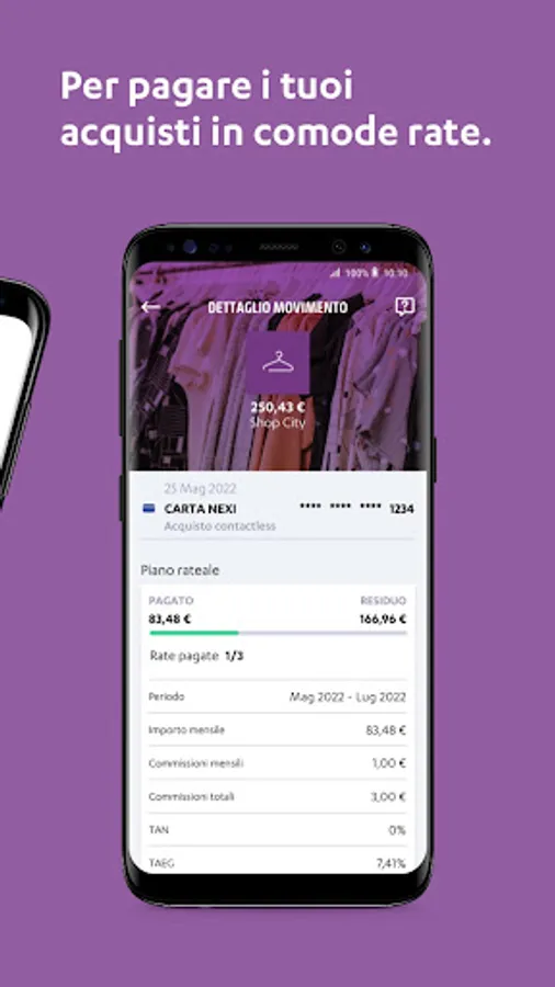 • Pay in installments for expenses over €250 directly from your phone with Easy Shopping