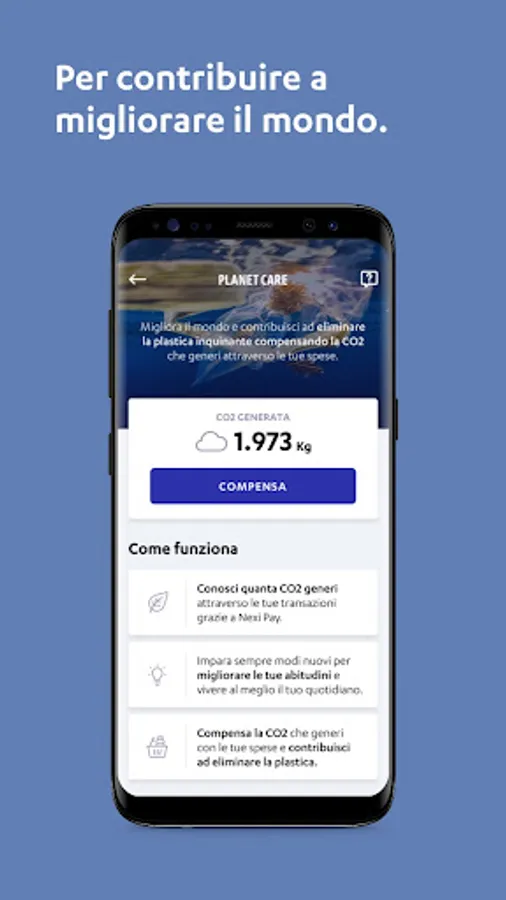 • Monitor your carbon footprint through the CO2 counter generated by your expenses