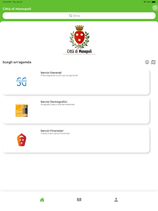 Smart City Monopoli is the App of the City of Monopoli that allows you to book General, Demographic and Financial services.