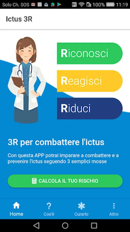 The ICTUS 3R app was born within the scientific project "Stroke: Communication & Innovation" whose purpose is to combat stroke through information. Recognizing a stroke, responding correctly and effectively, reducing risk.