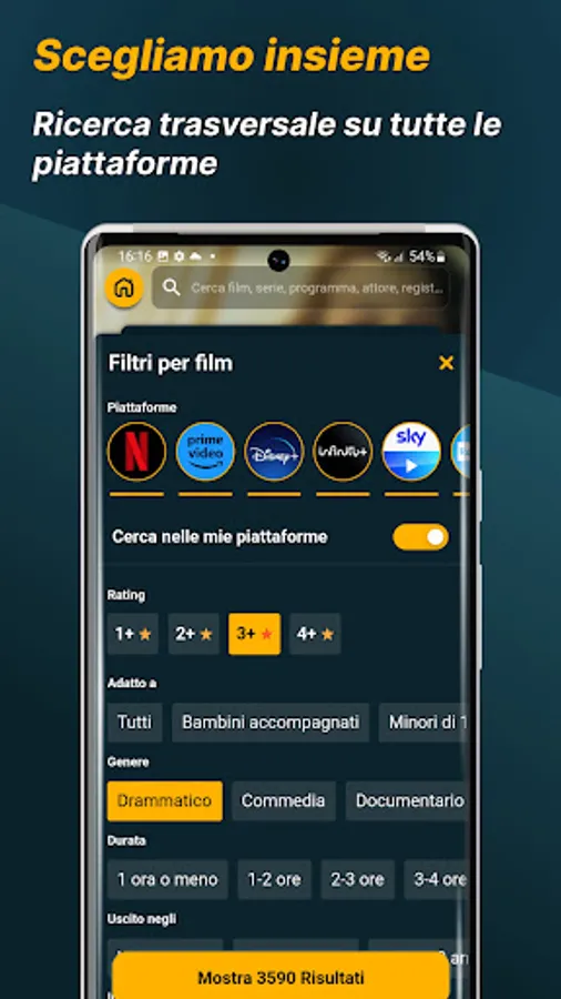 The renewed search engine and the innovative advanced search functionality give users the opportunity to search for the title they like by considering all the On Demand platforms they want to select, without having to connect to each platform separately. Likewise, the cross-platform approach allows the user to collect titles present on different On Demand platforms in their digital library and, by clicking on the detail of the title, to be just one click away from streaming on the platform itself.