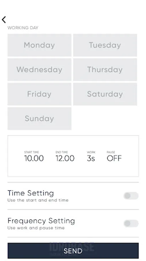 Idrobase FogApp is used to connect Idrobase Fog Machine with your mobile phone with Bluetooth. It can be set to work: