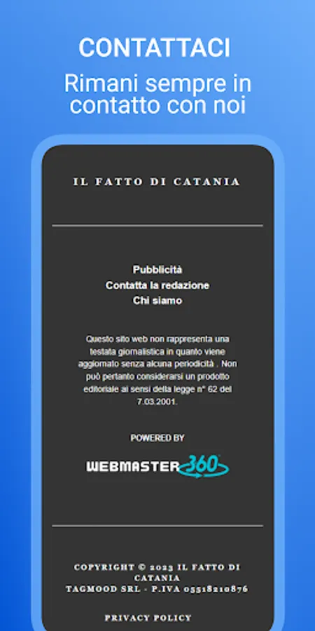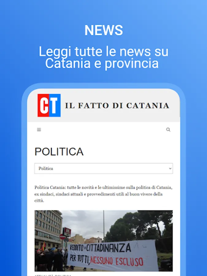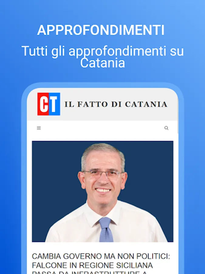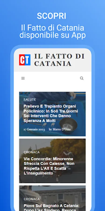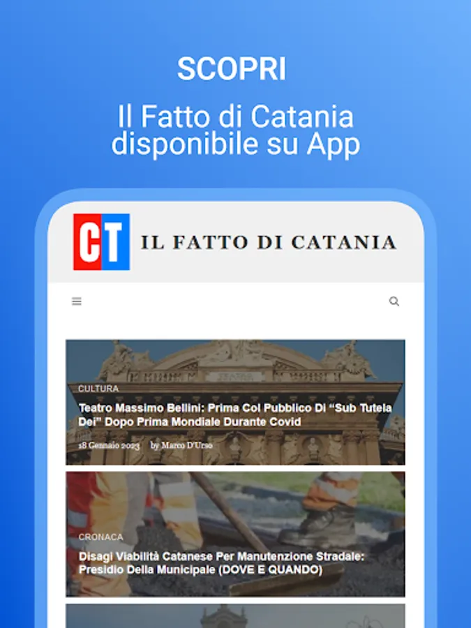 Il Fatto di Catania is the news app that always keeps you updated on events in the Catania area. With an intuitive design and smooth browsing experience, you can access the latest news in seconds. It doesn't matter if you are interested in news, politics, sports or culture, we have everything you need to stay informed. With personalized push notifications, you will never miss important news. Also, you can easily share the news with your friends and family via social media. Download Il Fatto di Catania and stay up to date on what is happening in your city.