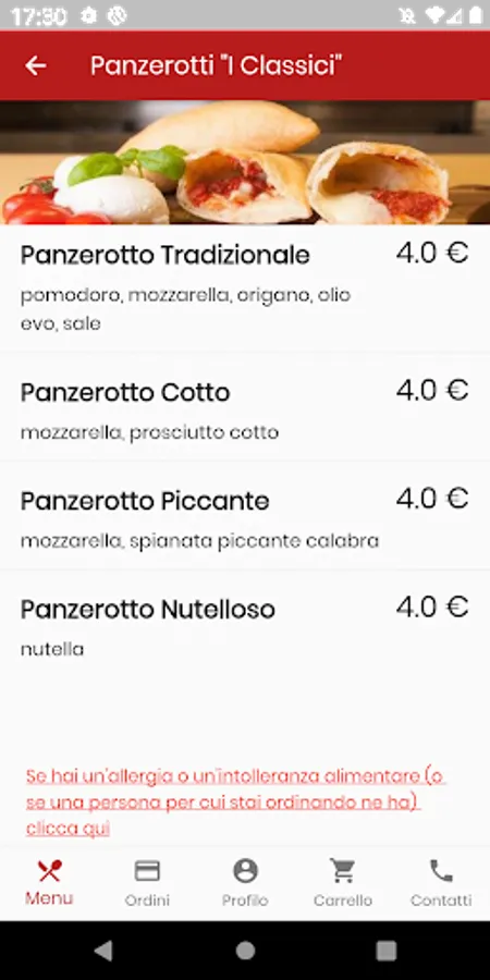 Some of the features of the Il Panzerotto app are:
