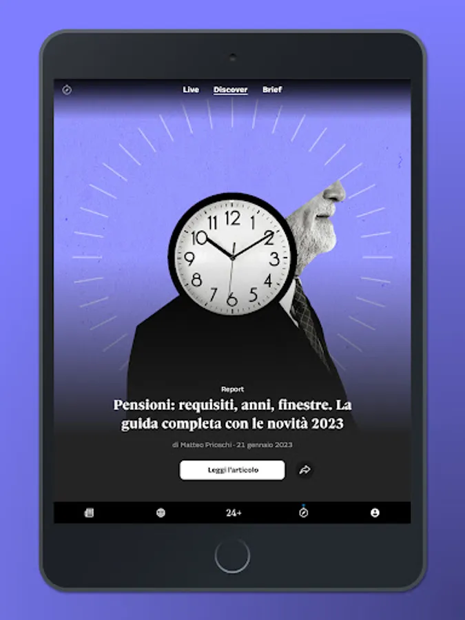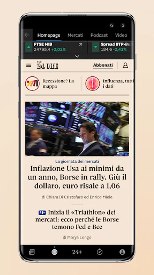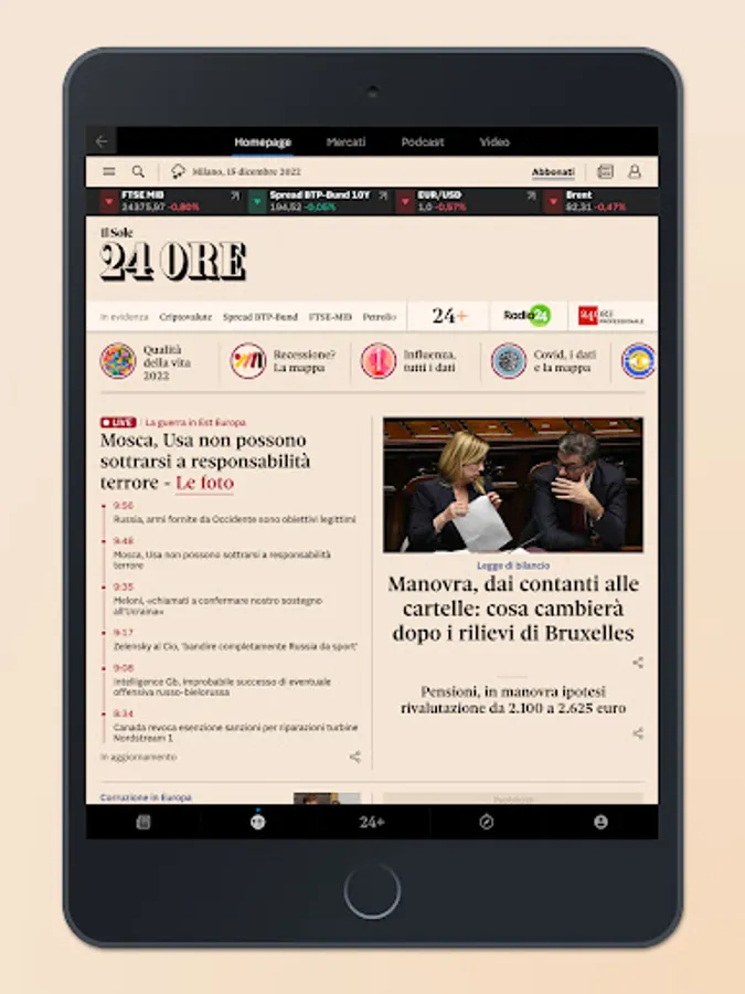 By downloading it you can subscribe to the digital newspaper or try the combined offer "Digital newspaper & 24+", with access to all the premium contents of the website www.ilsole24ore.com, in a monthly or annual formula.