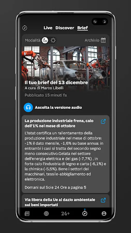 The podcast series of Il Sole 24 Ore and 24+ can be accessed directly from the app
