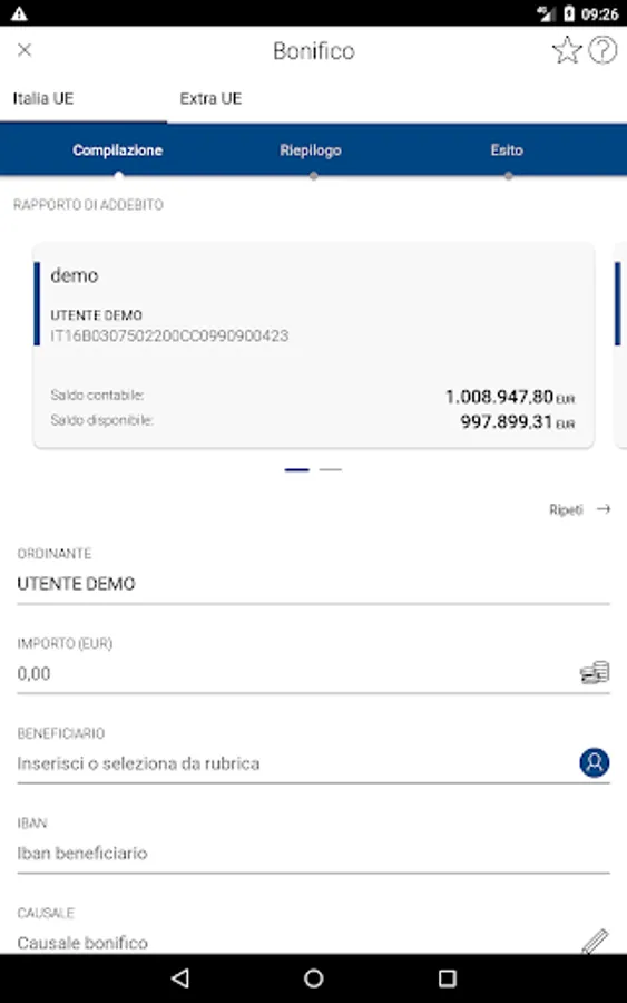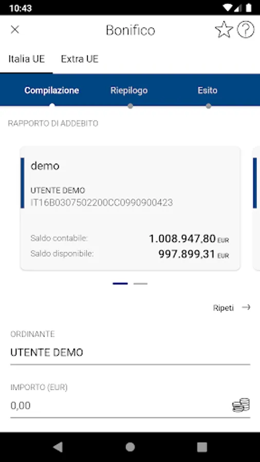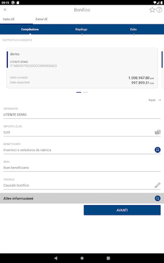 Semplice e innovativa! E’ l’App di imprebanca a cui puoi accedere nella massima sicurezza con i più moderni sistemi di riconoscimento (Finger Print o Face ID). Puoi gestire i tuoi affari in completa autonomia, con un tap oppure con la tua voce! Una completa gamma di servizi disponibili sul tuo smartphone che ti semplificano la vita. Tramite l’assistente vocale potrai ad esempio effettuare un bonifico ad un beneficiario salvato in rubrica, senza digitare nessun campo. Installa subito l’App ed entra nel nuovo mondo di imprebanca, la banca dal tuo punto di vista.