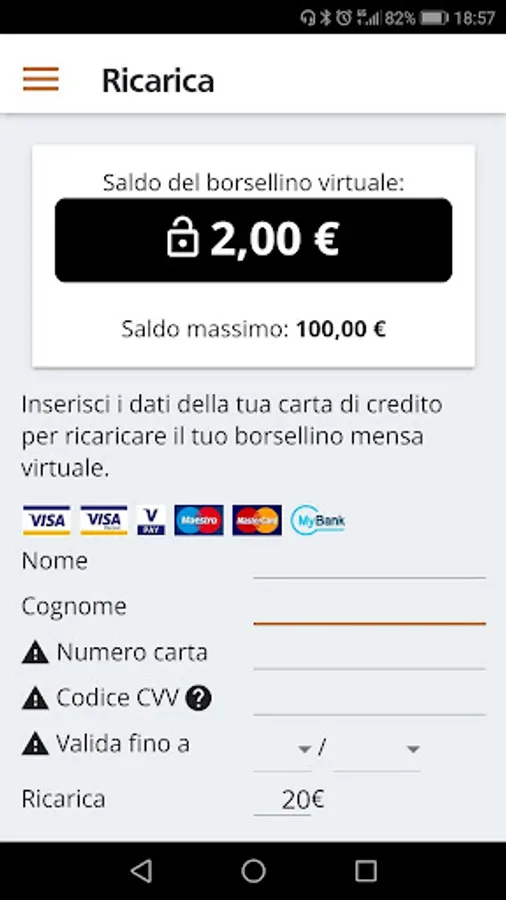Online refill service for eBADGE's virtual canteen for the payment of meals in the catering facilities of EDUCatt, the institution for the right to university studies of the Catholic University.