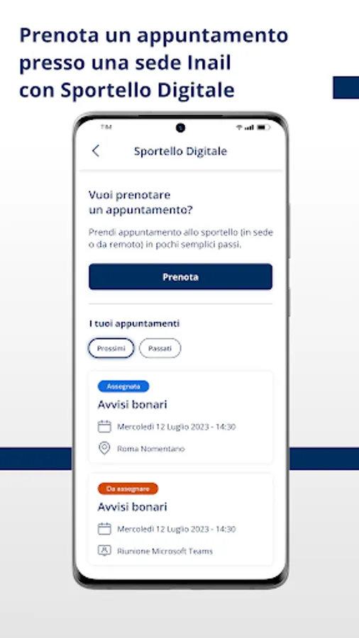 It offers you the possibility to book an appointment at an Inail office via the app.