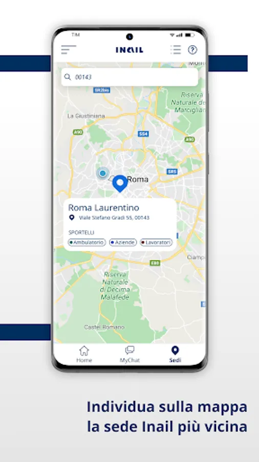 It offers you the possibility of identifying on the map the nearest Inail office that best meets your needs, view its details, the opening times of the branches, and request driving directions to reach it.