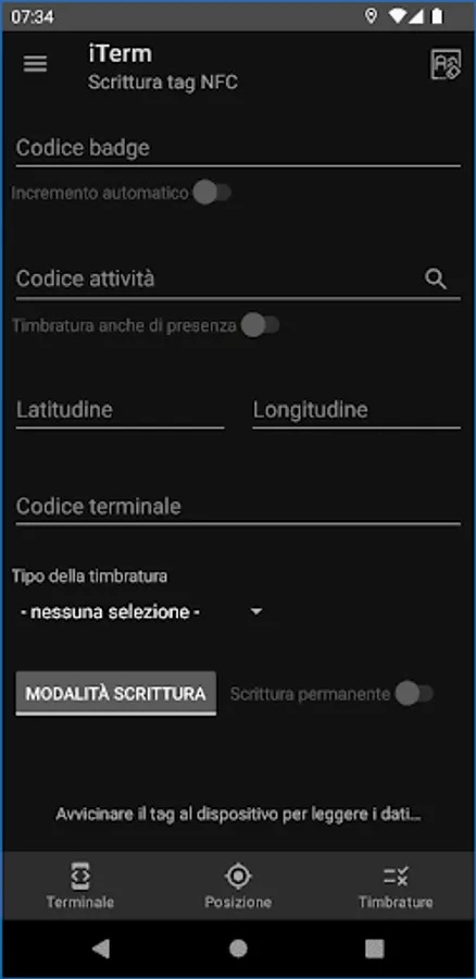 • NFC tag writing (only if authorized)