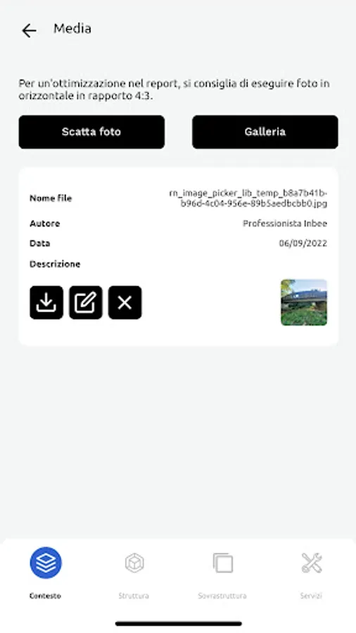 The App connects directly to the camera and allows you to attach photos taken directly in the field to the inspection in the right position.