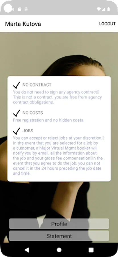 After installing the application, ask your agent your login credential: you just joined the most technology updated model agency!