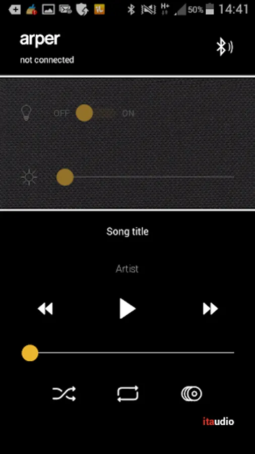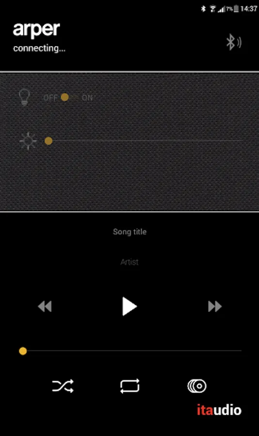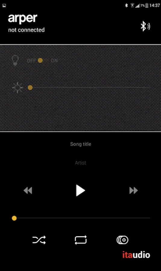 The app enables a full light control of your panel with ON/OFF switch buttons and control bars to choose the light mix, either warm or cold based on the needs, and let you manage and reproduce the playlists from your device with a clear and clean sound without any equalization.