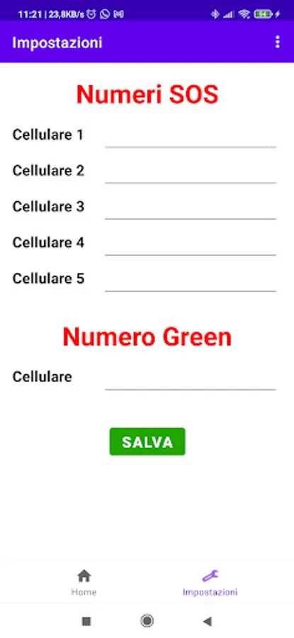 The Application gives the possibility to save up to 5 telephone numbers in the address book and automatically send an SMS with GPS position, localized address and coordinate accuracy in meters.
