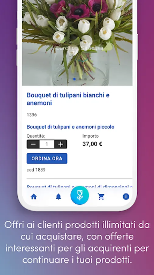 Boost your flower sales business with an application designed for florists, registered to you, which allows complete customization to sell your products without limits, manage offers, notifications, discount codes.