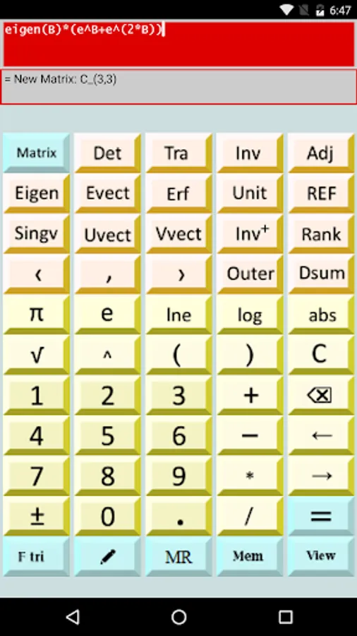 to operate on complex numbers Matrix Calculus requires the payment of an in-app.