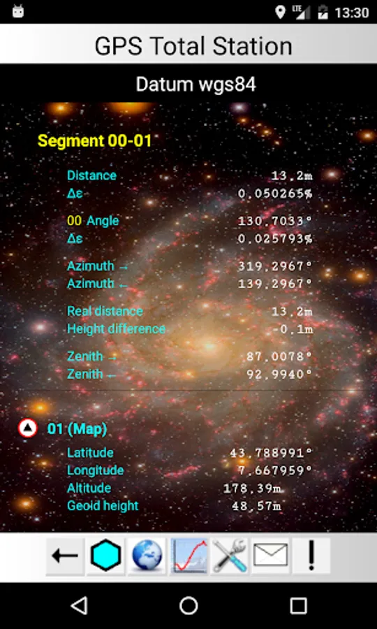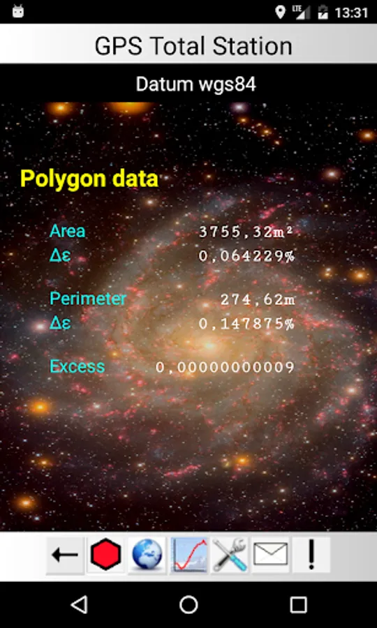 The application calculates topographic and real distances between points, their angles, the perimeter and the surface area, azimuth and zenithal angles and related errors.