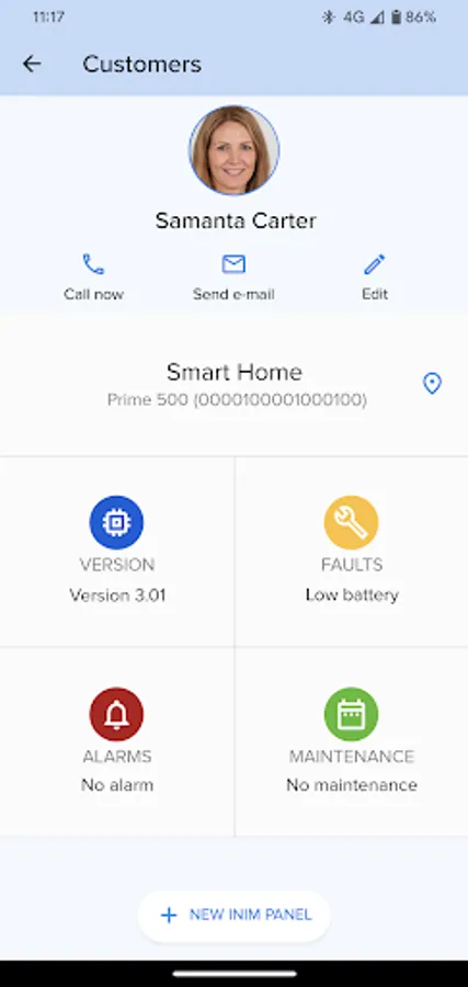 InimTech Security also shows the installer's picture and his own unique ID for all INIM services.