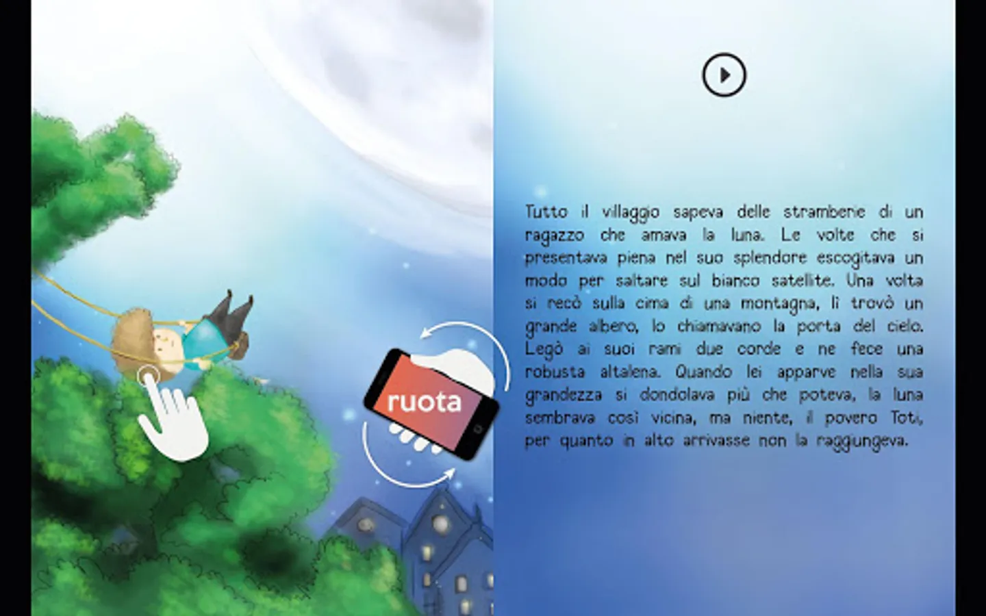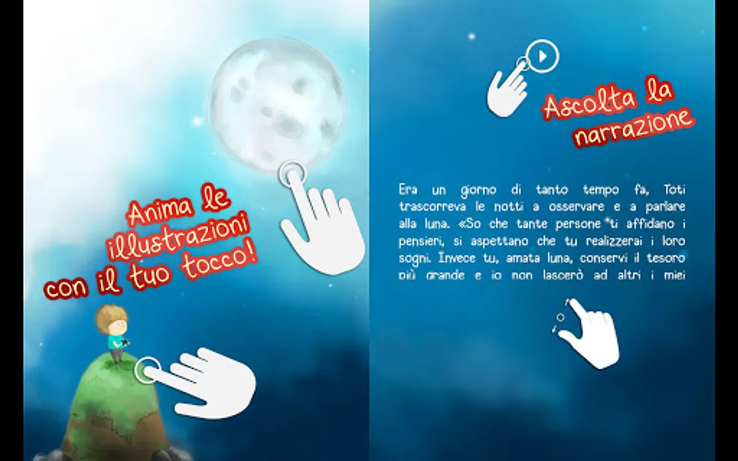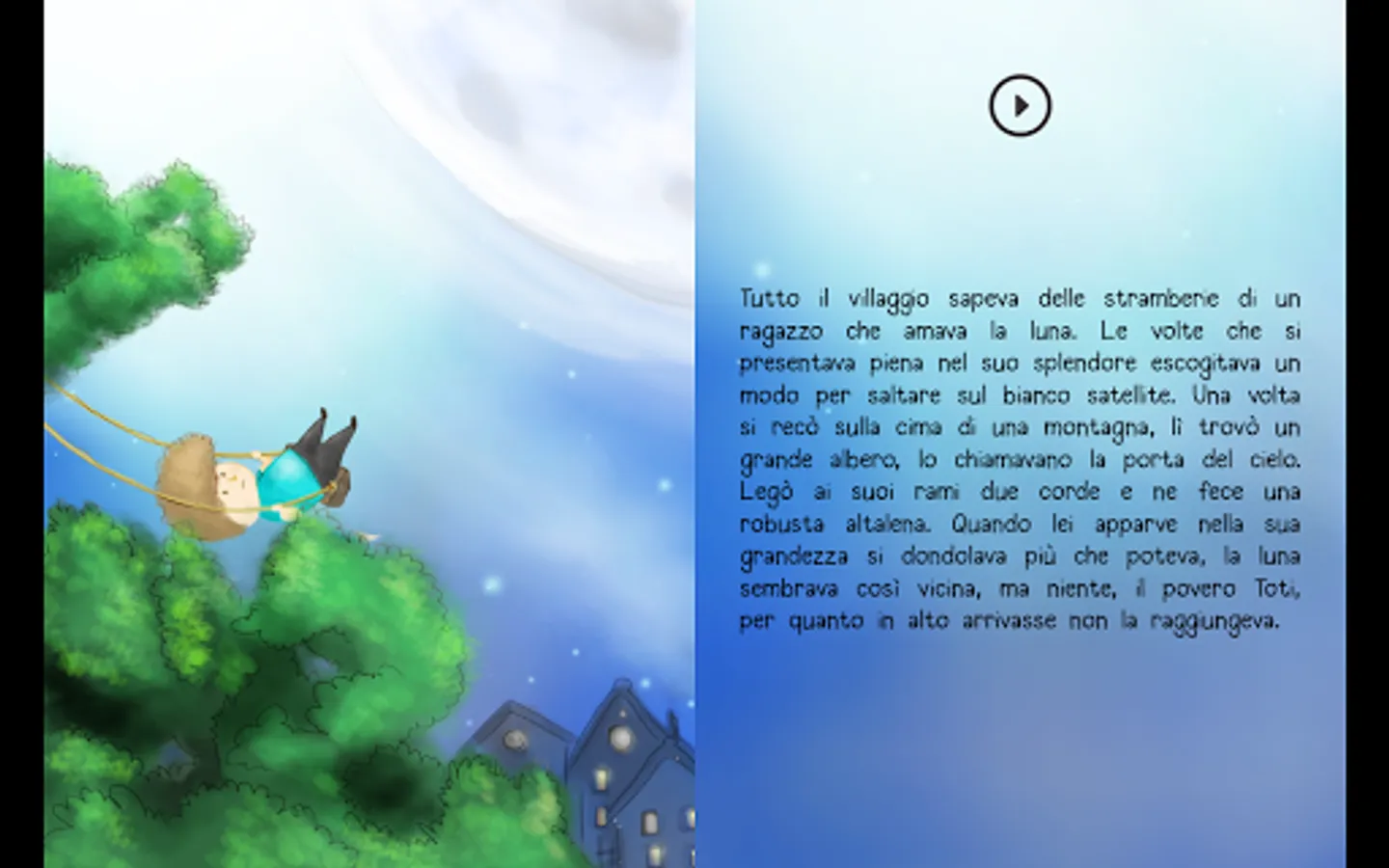 The story of two boys in search of themselves and their own desires: Toty, the boy fascinated by the moon passing her days to find ways to reach it, and Lay, the girl of the moon that likes to take care of the bright planet, no realize how many encompasses dreams.