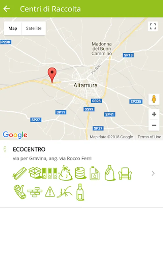 In the current version of the app, they have managed the municipalities of Altamura, Santeramo in Colle, Gravina, Grumo Appula, Poggiorsini and Toritto. The sweeping services, waste collection and transport is managed by the company Teknoservice Srl ..