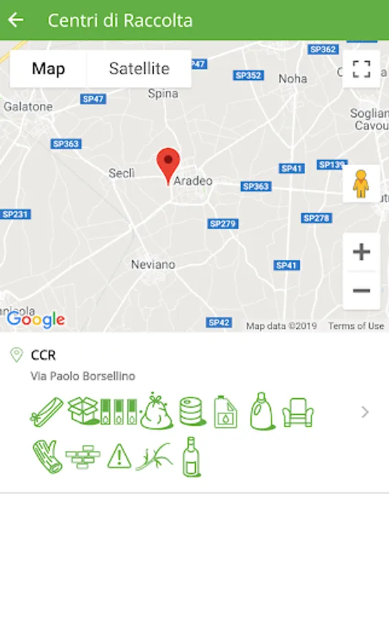 In the current version of the app, the municipalities of Aradeo, Sannicola, Collepasso, Seclì and Nardò are managed. The service of sweeping, collection and transport of waste is managed by the companies Bianco Igene Ambiente srl and Gial Plast srl.