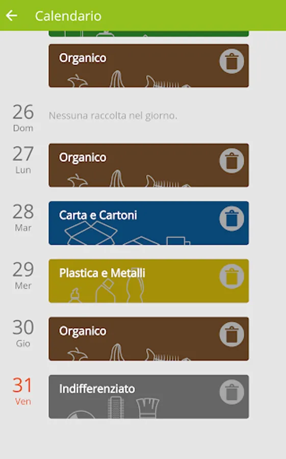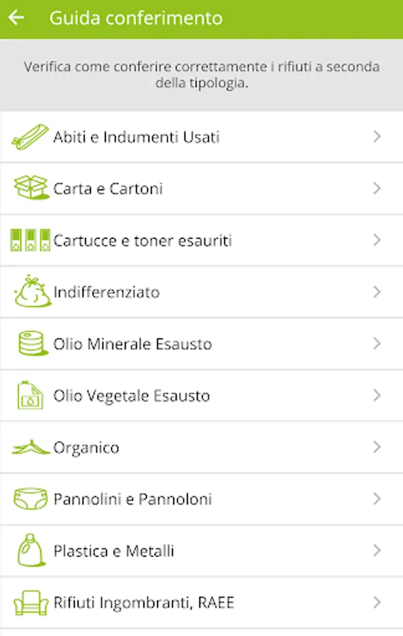 The app offers the user a series of functionalities through which it is possible to know and investigate how to dispose of waste, but it is also a useful tool to send alerts and requests for home collection, to know the opening hours and days of the Center for Collection, personalization of notifications and many other functions.