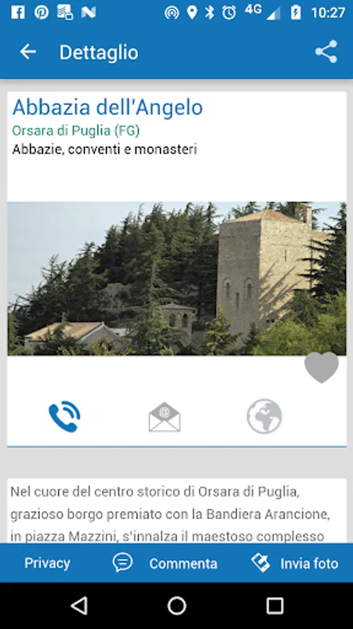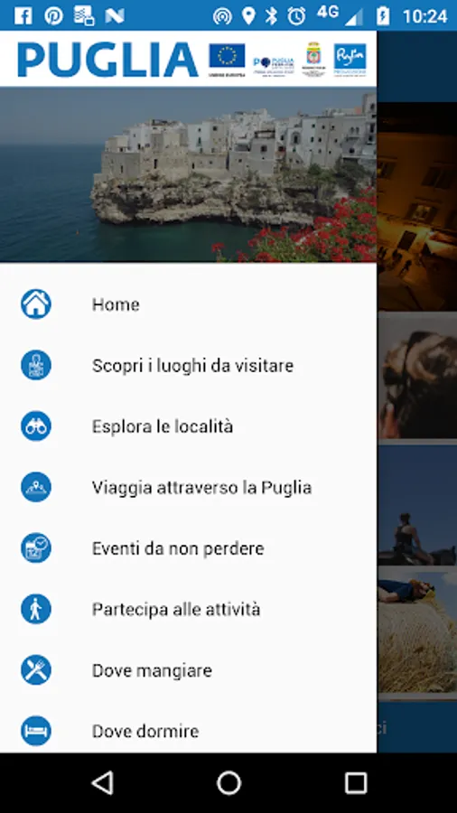 Welcome to Puglia! A travel guide for your journey through Puglia, to get the most out of your trip. If you are in Puglia, the app will recognize your location on the map and will suggest the sights closest to you, such as hamlets, museums, beaches, parks, ports, mooring areas and much more. Furthermore, you’ll receive updates about scheduled events and activities, tips on where to eat well and overnight, travel ideas according to your preferences and read contents while offline.