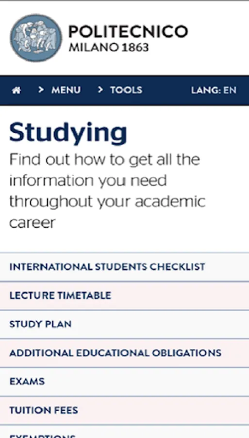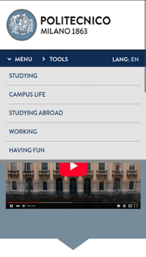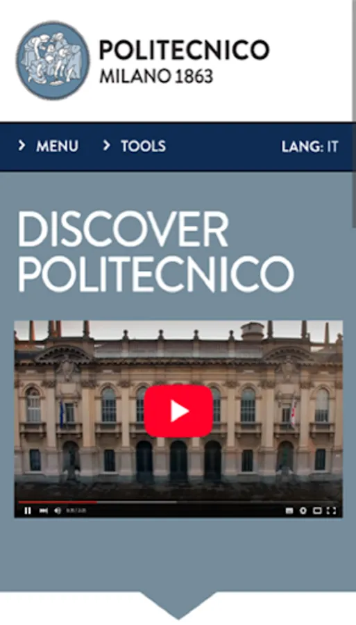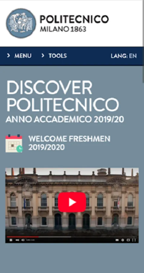 On this application, you will also find an official video of the University, a link to our social channels as well as a menu with the main tools available for students.