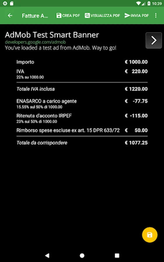 The paid PRO version is also available without advertising and with various additional features, such as, for example, the ability to save PDFs and send them via email. See the detail page for more information (https://play.google.com/store/apps/details?id=it.innovationquality.fattureagentipro).