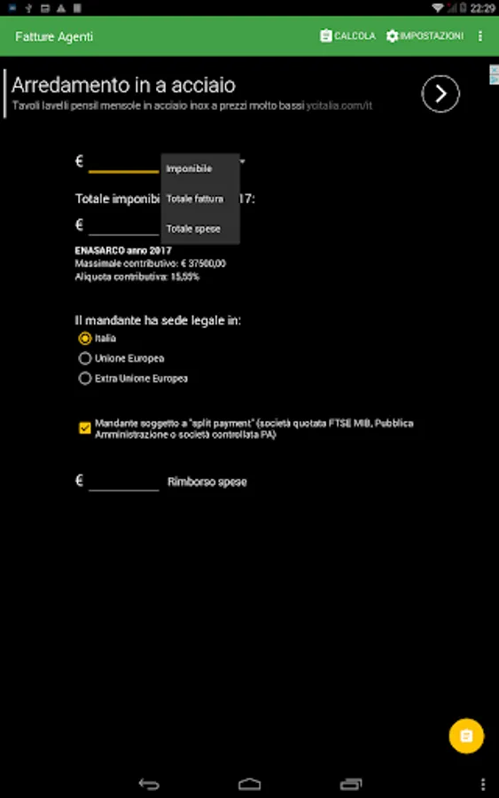 Are you a freelance agent or sales representative (also in associated form)? This app helps you create invoices for your commissions.