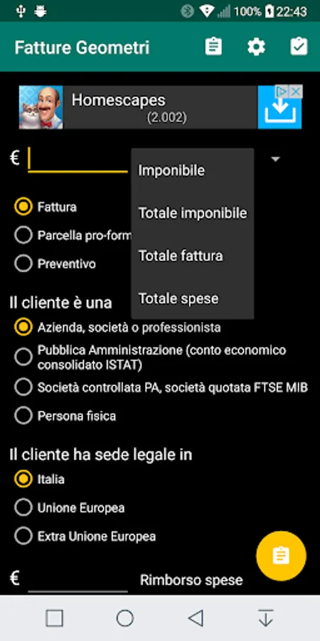 Are you a freelance surveyor? This app helps you create invoices, pro-forma parcels, quotes or receipts.