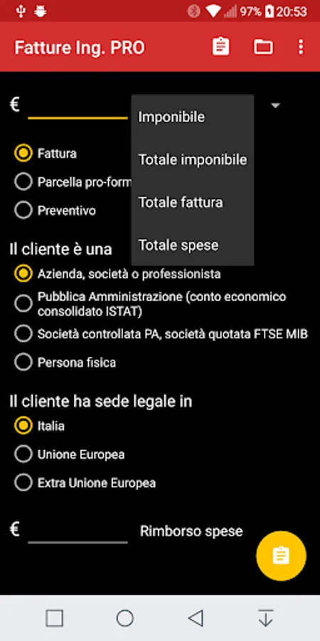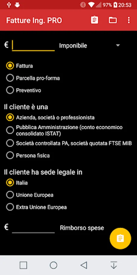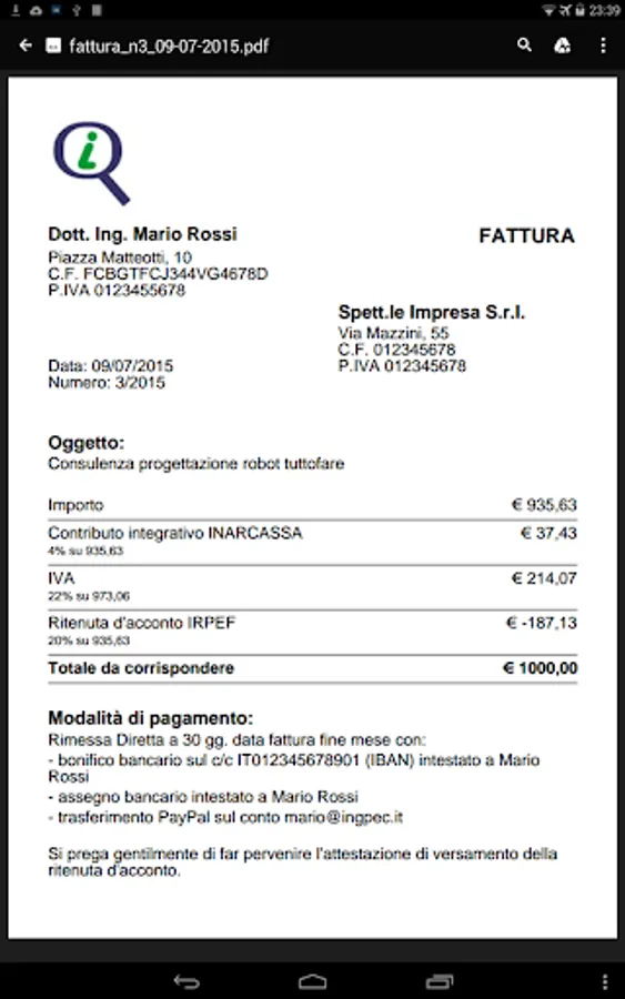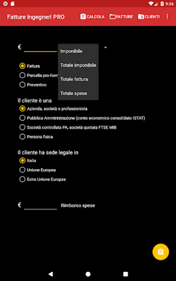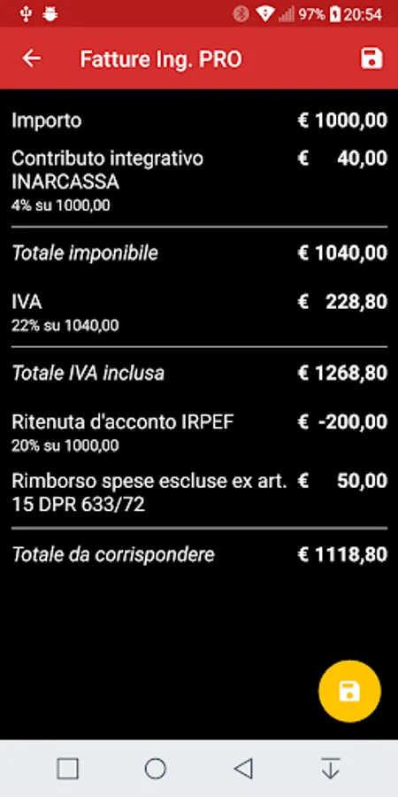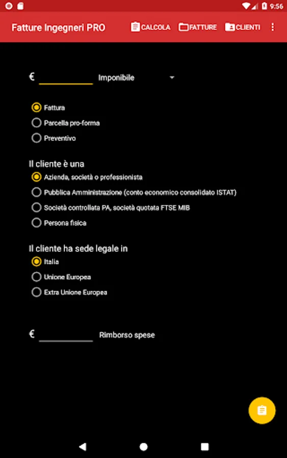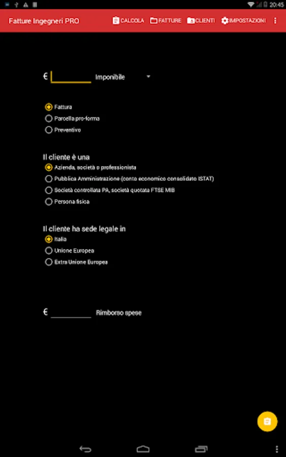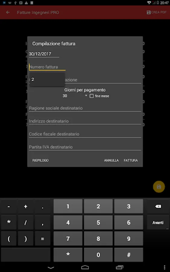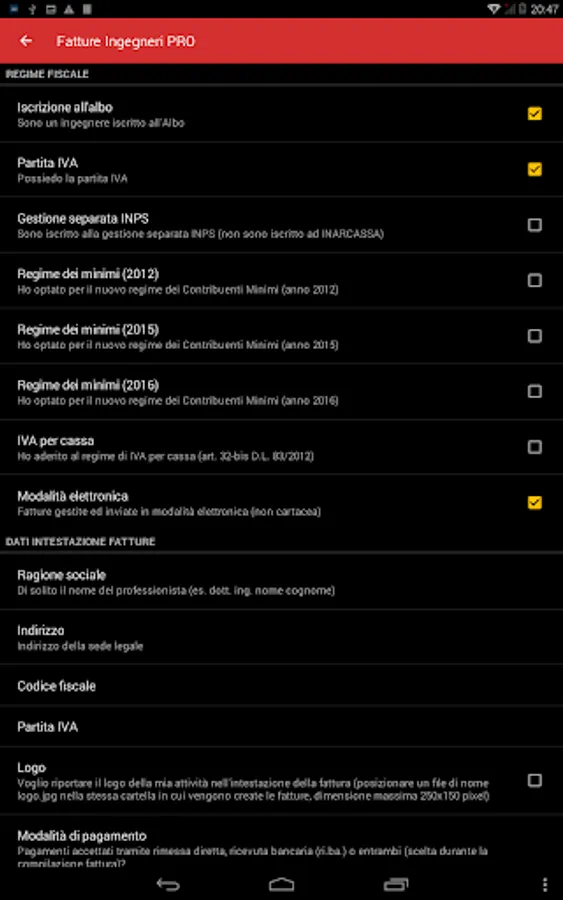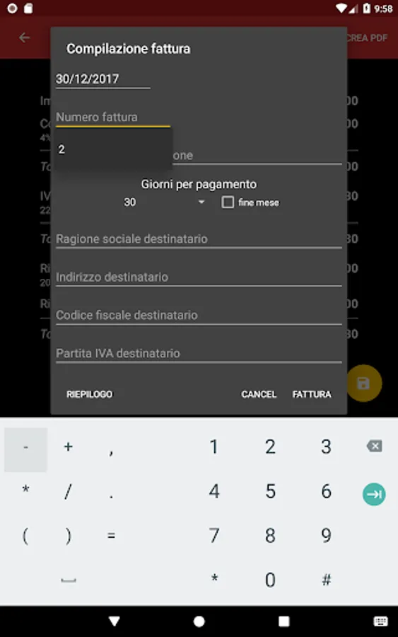 - at the moment, this App does not allow the automatic sending of electronic invoices; those who adopt the ordinary tax regime can still use this App for the calculation and the possible PDF creation, and adopt, in addition, the Web service