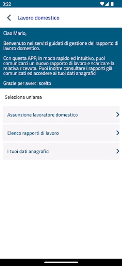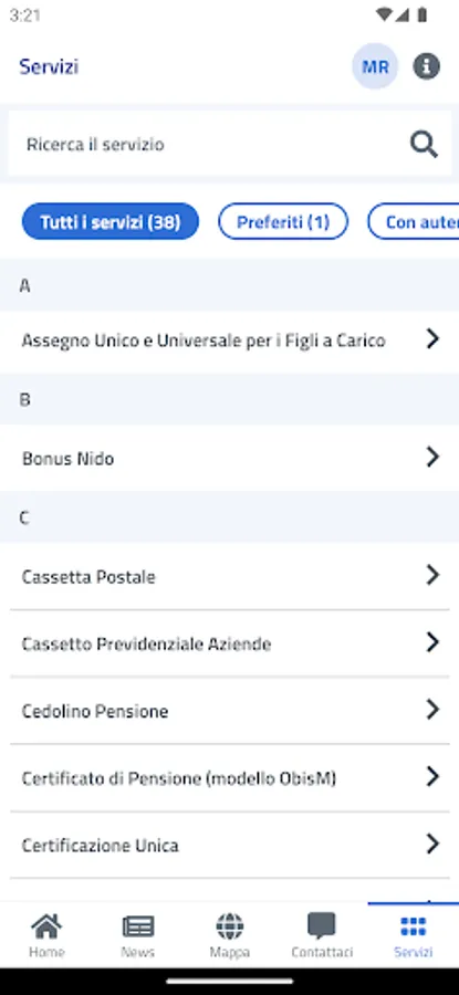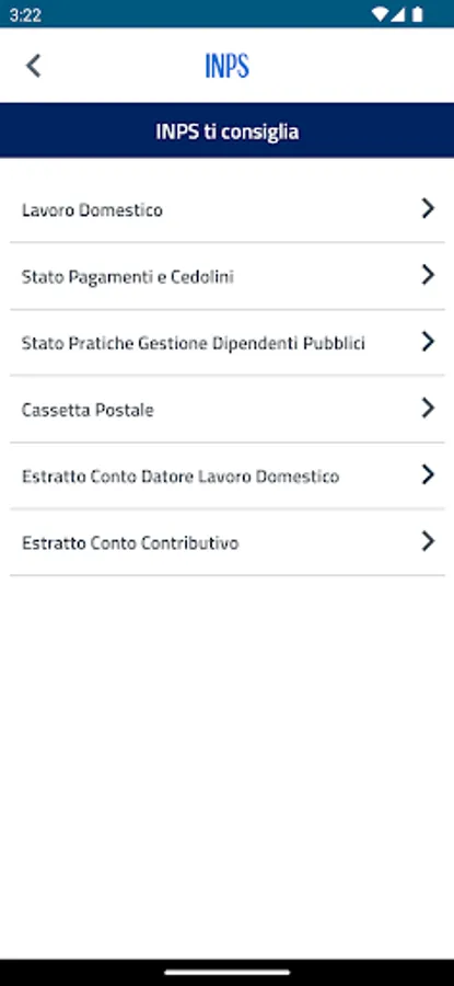 The user can view the complete list of available services even without entering the credentials required for a part of the services available in the INPS mobile app.