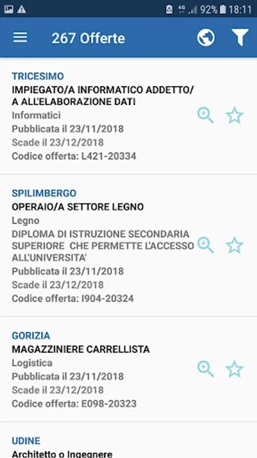 It provides all job vacancies published by the Employment Centers and the FVG Eures Service.