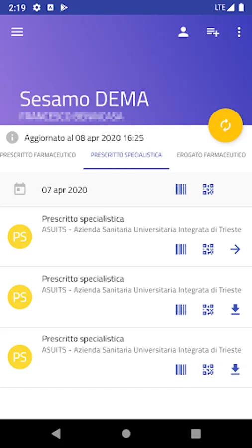 It is possible to access your dematerialized recipes (prescribed and dispensed pharmaceutical, prescribed and dispensed specialist) through SPID credentials and manage them within your Electronic Health Record.