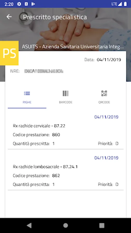 Or you can log in for you and your loved ones with your tax code and National Service Card and view only the codes of your dematerialized pharmaceutical prescriptions prescribed by the Doctor.